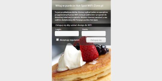 Jest to wersja mobilna skórki, która została stworzona z myślą o restauracjach, cukierniach, pubach i ciastkarniach. Pola z opisem i tytułem są edytowalne w panelu sterowania WiFi-Zone. Polecamy tą skórkę wszystkim, którzy prowadzą działalność związaną z gastronomią.